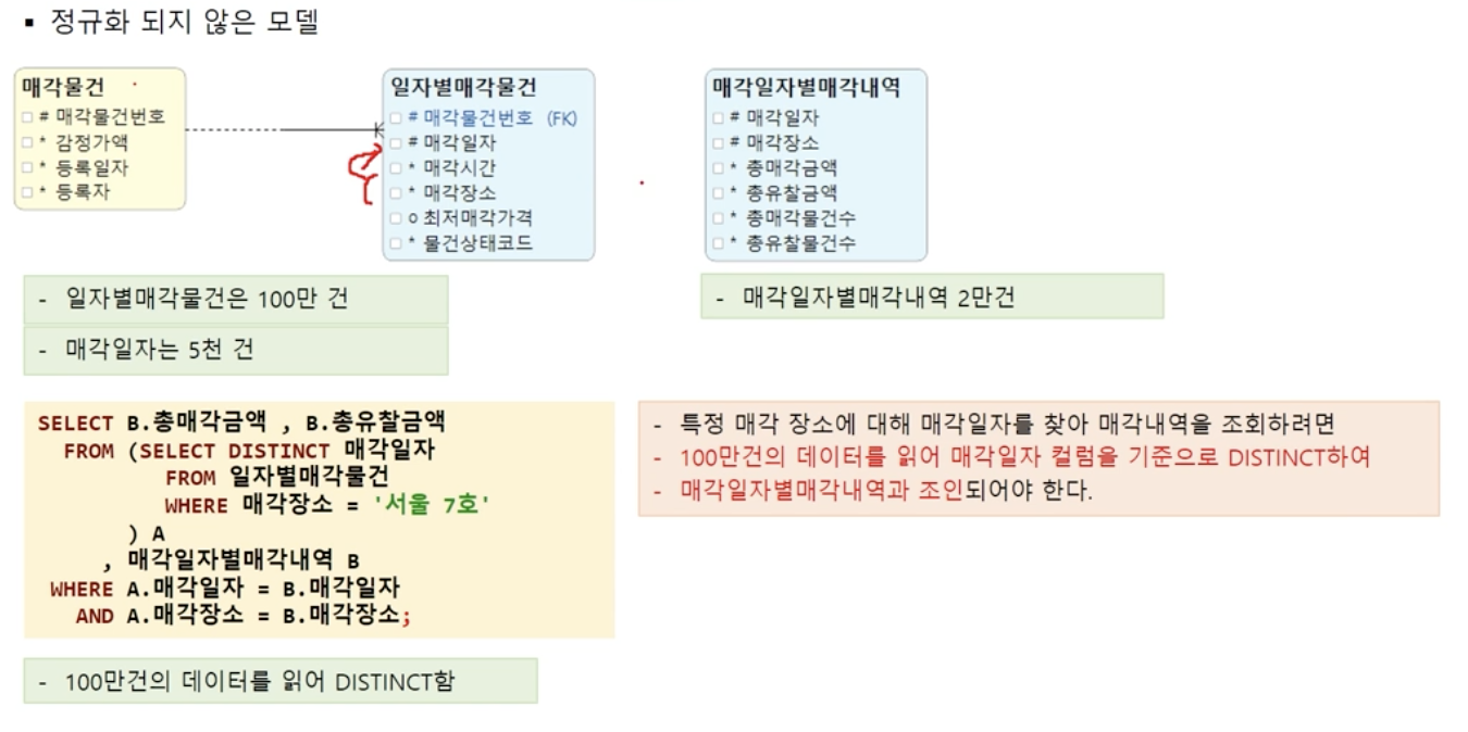 - 정규화된 테이블을 데이터를 처리할 때 속도가 빨라질 수도 있고 느려질 수도 있는 특성이 있다.