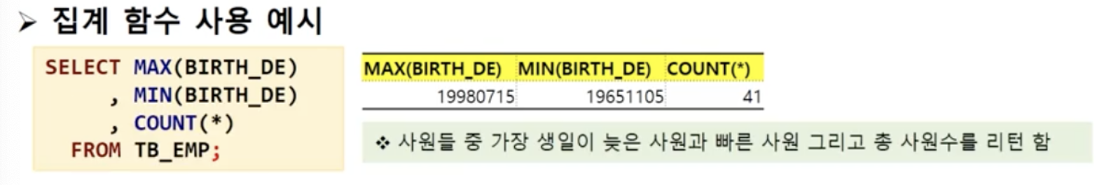 - WHERE 절에서는 집계 함수를 쓸 수 없다.