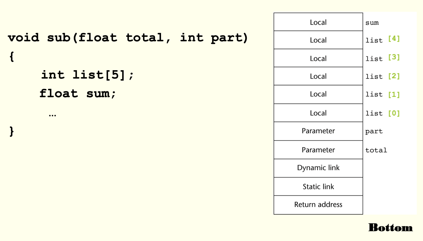 - 일부 C기반이 아닌 static-scoped 언어(예: 포트란 95, 에이다, 자바스크립트)는 스택 동적 로컬 변수를 사용하고 하위 프로그램을 중첩할 수 있습니다.