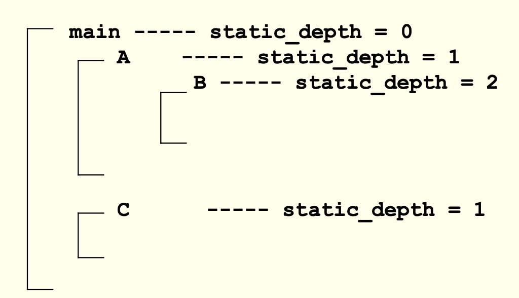 - Static Scope Rule: 수행 전 변수의 scope 결정