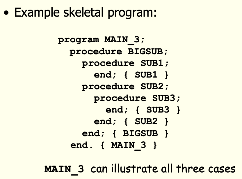 프로그램 유닛 안에서 static scopes을 생성하는 메소드 (from ALGOL 60)