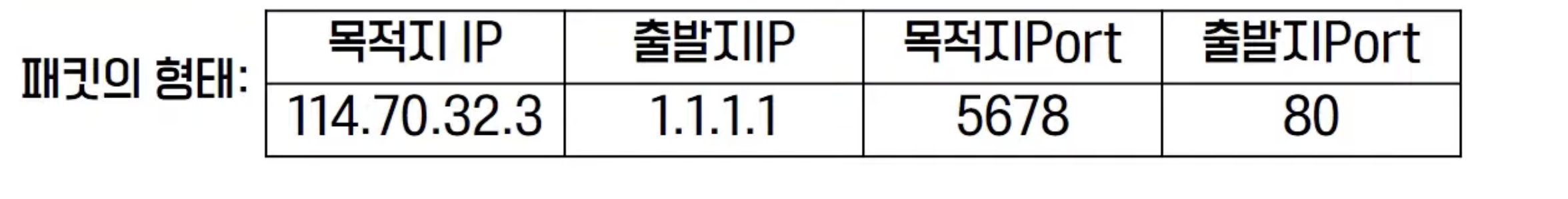 3. 그 후 매핑테이블을 활용하여 목적지PORT번호로 사설IP주소를 찾는다.