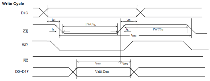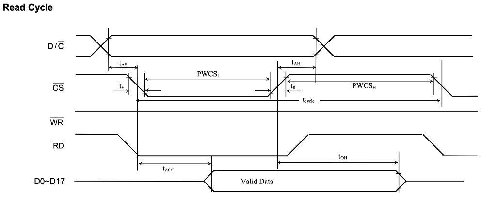 - D/C ̅가 high, (CS) ̅가 Low, (RD) ̅ 신호가 Low 일 때 D0~D17의 Display를 읽는다